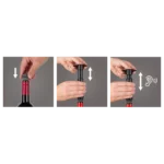 Ce système Vacu Vin — pompe + bouchon — retarde l’oxydation en éliminant l’excès d’air dans la bouteille ouverte. Grâce à lui, vous pouvez sauvegarder la qualité du vin et le déguster au fil des jours, sans compromettre son goût.