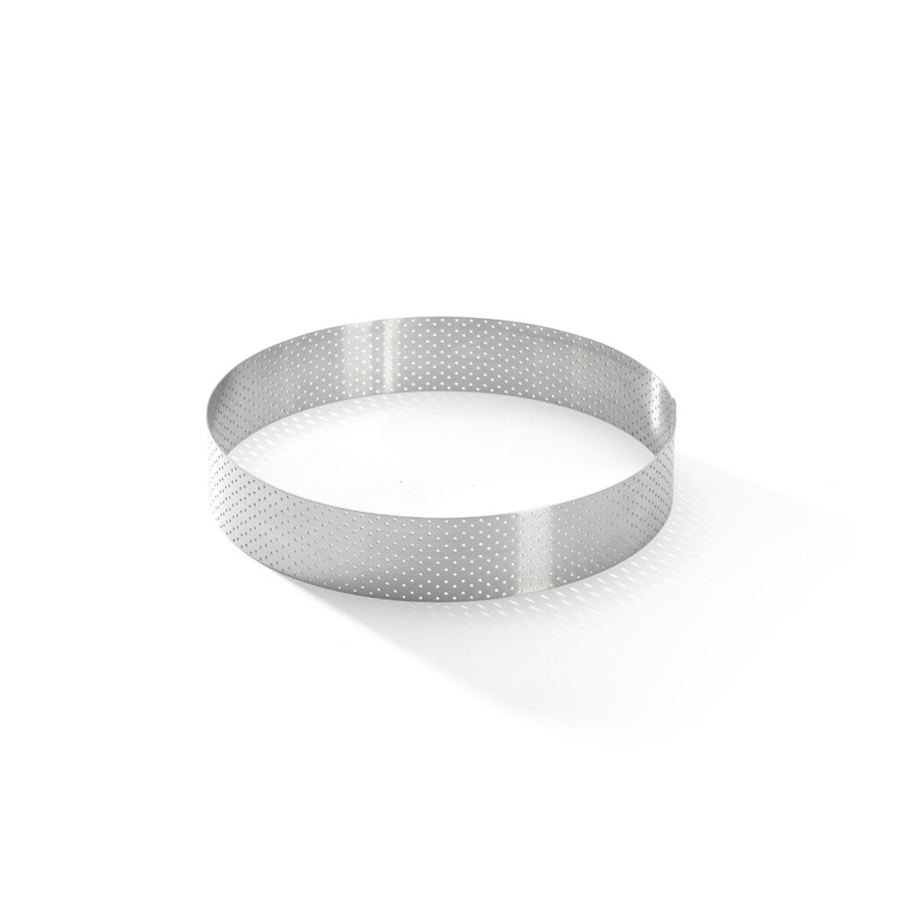 Ce cercle à tarte perforé De Buyer est un outil de pâtisserie indispensable pour ceux qui cherchent un résultat soigné et professionnel à la maison. Développé en partenariat avec l’École du Grand Chocolat Valrhona, il est spécialement conçu pour cuire harmonieusement les pâtes sablées, feuilletées ou brisées grâce à sa perforation stratégique qui favorise une circulation optimale de la chaleur.