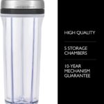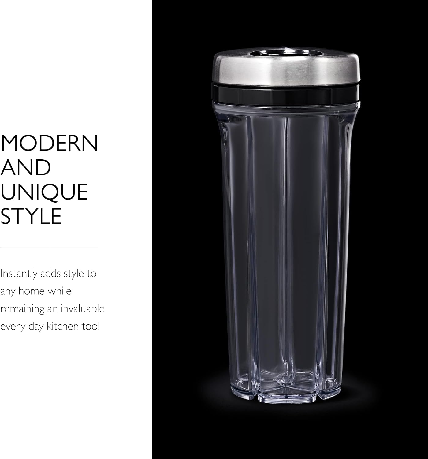 Le corps transparent en acrylique permet d’identifier rapidement le contenu et de surveiller le niveau des épices. Son design moderne associant acrylique et acier inoxydable s’intègre facilement dans toutes les cuisines tout en garantissant robustesse et durabilité.