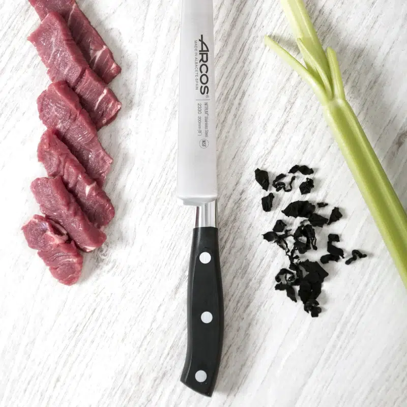 Le couteau à découper Arcos Riviera 200 mm est l’outil indispensable pour trancher avec précision viandes, volailles et rôtis. Conçu pour offrir une coupe nette, fluide et sans déchirure, il séduit autant les chefs professionnels que les passionnés de cuisine exigeants.