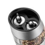 Une fenêtre transparente pratique te permet de voir le niveau de sel ou de poivre restant, pour recharger facilement avant la prochaine utilisation. Compact et moderne, ce moulin se marie facilement avec tous les styles de cuisine et se range sans encombre.
