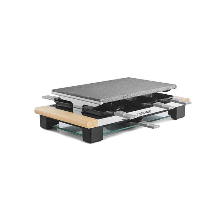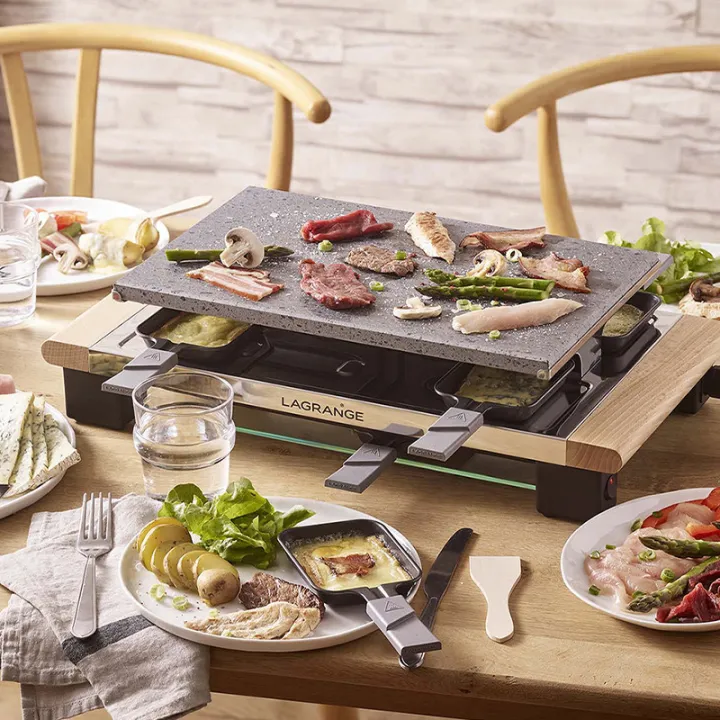 La Raclette Pierre Élégance® de Lagrange réinvente les repas conviviaux avec une touche de raffinement. Dotée d’une grande plaque en pierre naturelle pour une cuisson saine et homogène, elle permet de griller viandes, légumes ou fromages tout en fondant délicieusement la raclette dans ses 8 poêlons antiadhésifs. Sa finition en bois, inox et verre apporte une allure élégante à votre table, mêlant authenticité et modernité. Pratique et puissante avec ses 1100 W, elle offre une chauffe rapide et constante. Les éléments amovibles facilitent le nettoyage, tandis que le design bien pensé assure un confort d’utilisation optimal. Alliant performance, durabilité et esthétique, cet appareil est parfait pour des soirées gourmandes et chaleureuses en famille ou entre amis.