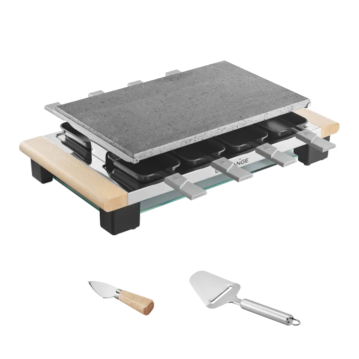 - Inclus dans ce pack : pierre de cuisson, 8 spatules, petit couteau à fromage