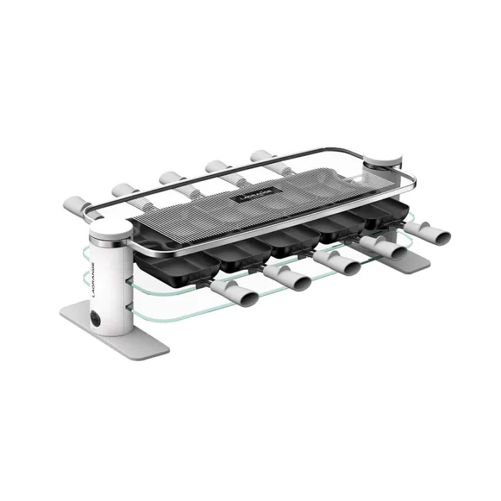 Lagrange revisite la raclette avec Transparence®, un appareil au design moderne qui allie élégance et convivialité. Ses plateaux en verre trempé offrent une visibilité totale sur la cuisson tout en apportant une touche raffinée à votre table. Son système de maintien au chaud et son range-poêlons intégré assurent un service fluide tout au long du repas. Facile à nettoyer grâce à ses éléments amovibles et compatibles lave-vaisselle, il simplifie la vie après la fête. Conçu dans des matériaux robustes et durables, cet appareil garantit performance et longévité, dans la pure tradition de qualité signée Lagrange.