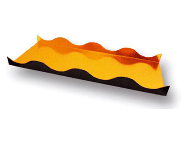 Semelle à bûche en carton, bords ondulés, double face or/noir pour poser les bûches de Noël ou autres pâtisseries (ex : gâteau roulé, entremets rectangulaires…).