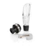 - Pour un service optimal, insérez l’aérateur dans le goulot pour oxygéner le vin pendant le versement.