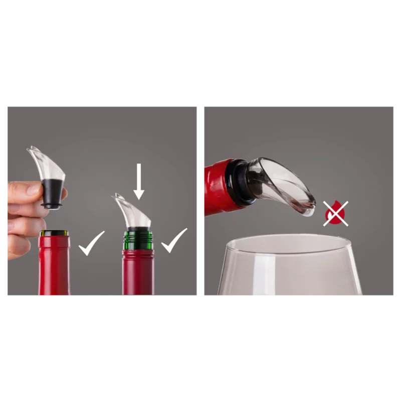 Son design épuré et intemporel apporte une touche de sophistication à votre table, parfaite pour toutes les occasions, qu’il s’agisse d’un dîner entre amis, d’une réception ou d’une dégustation. Chaque verseur se fixe facilement sur le goulot de la bouteille, assurant un débit contrôlé et un service impeccable.